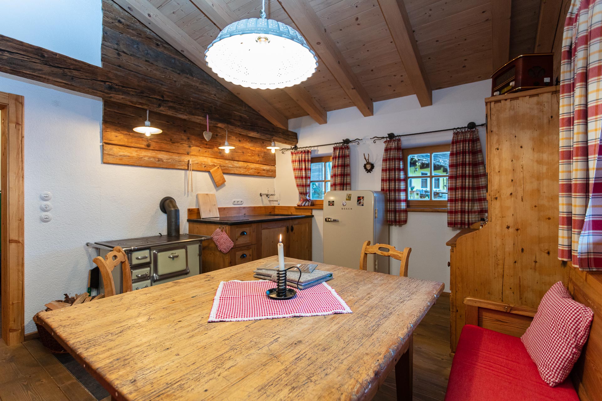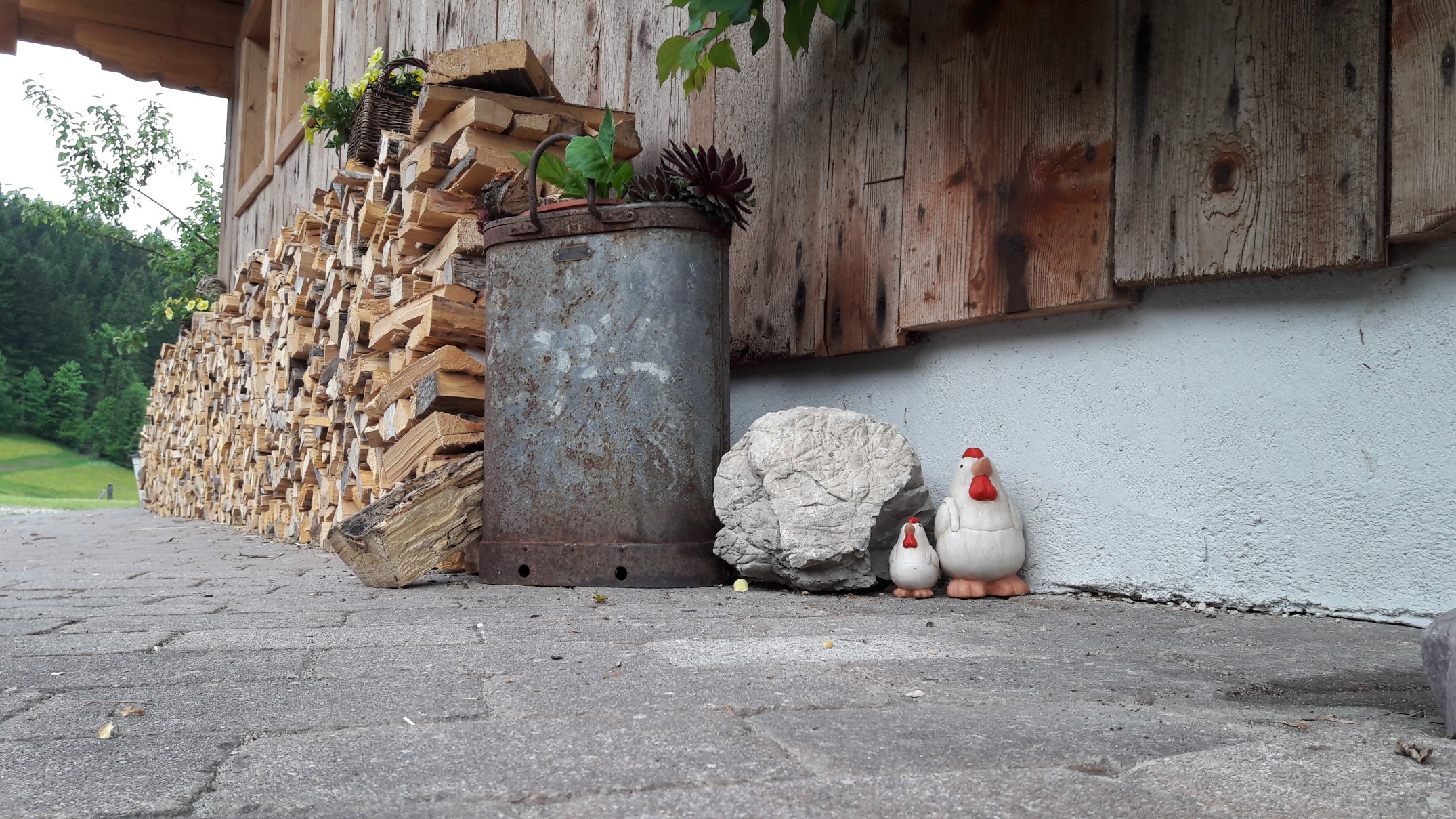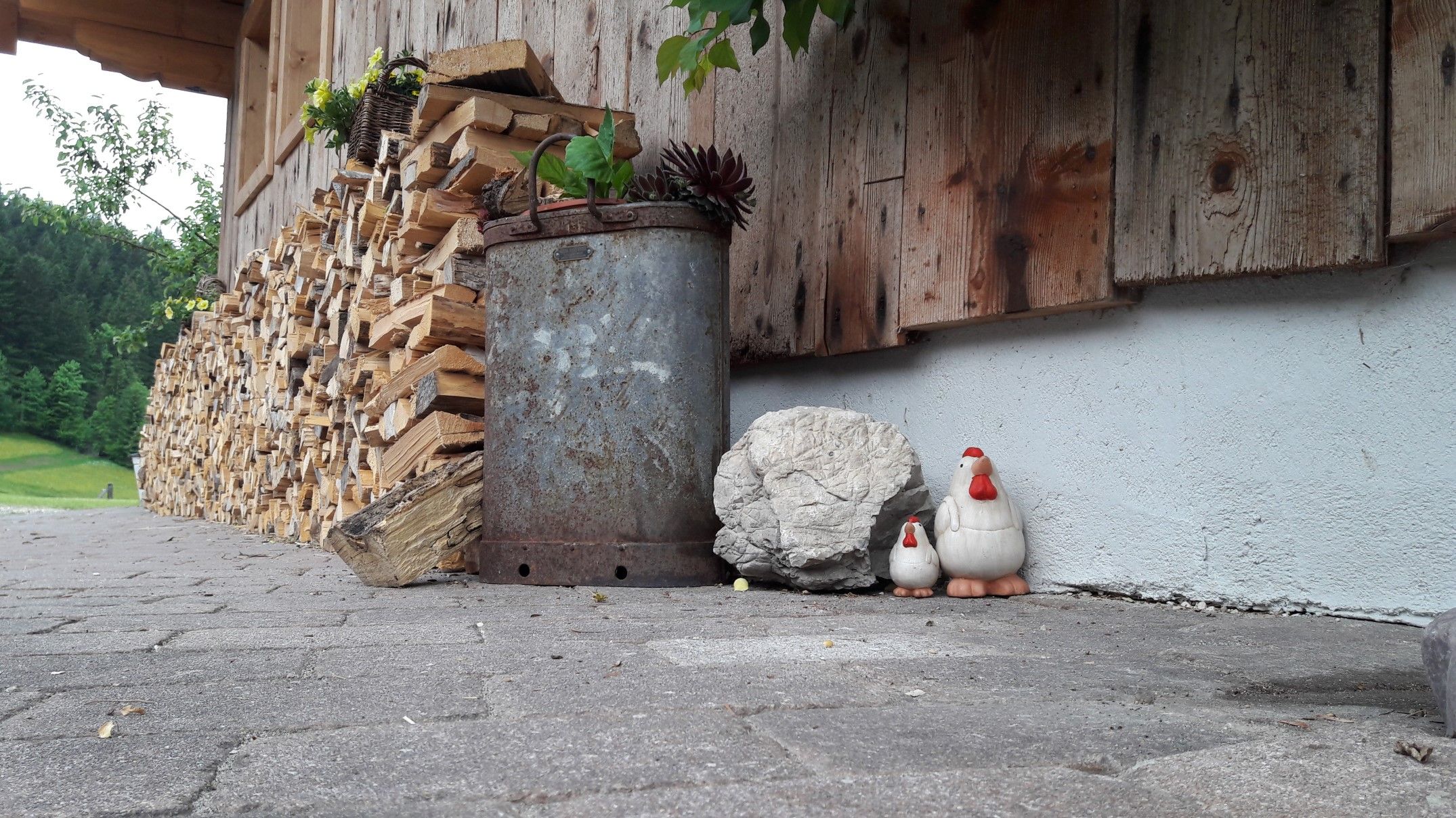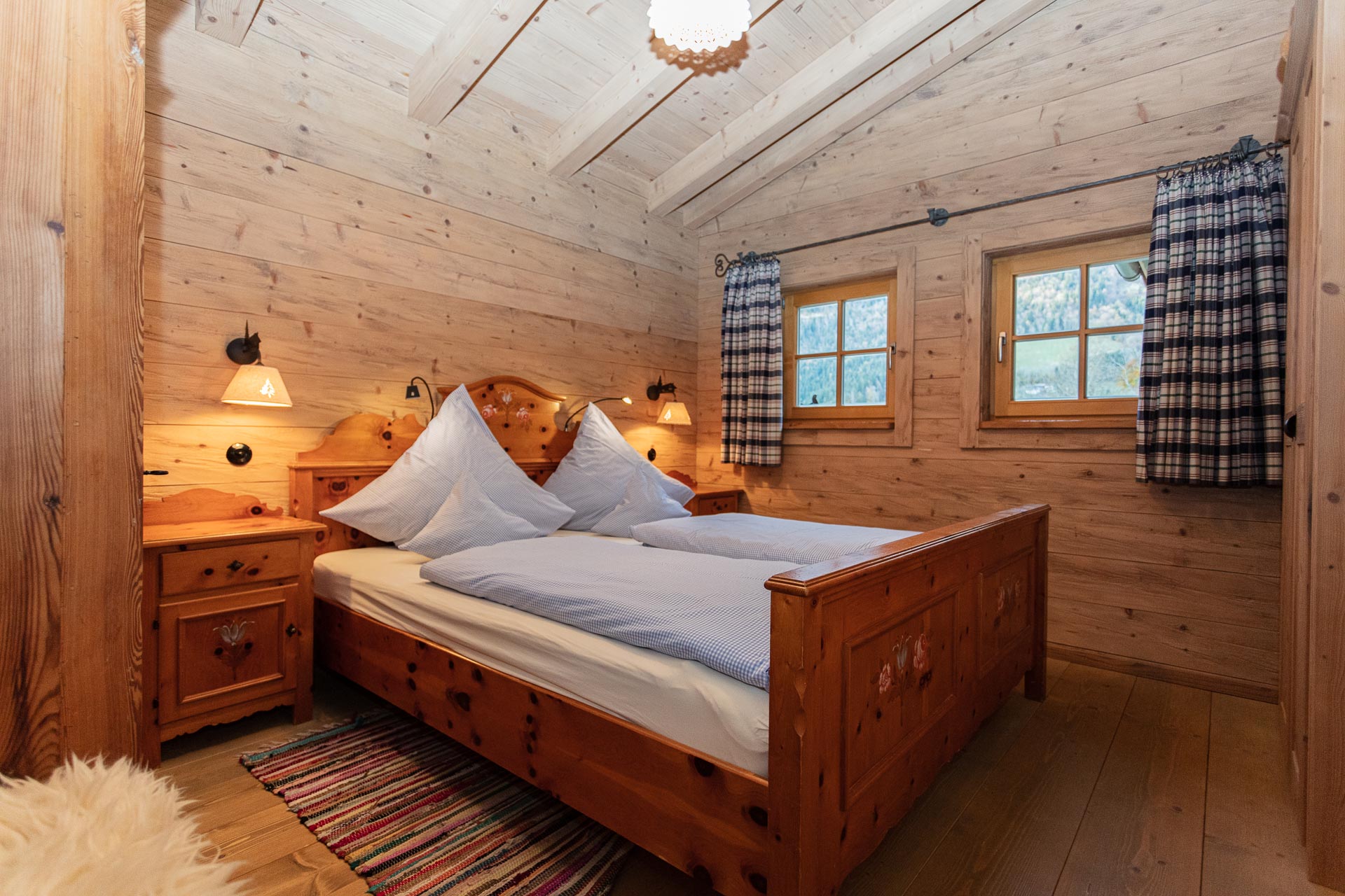 Im Liegestuhl auf der privaten Terrasse, mit Brunnen, Gartendusche, Kneippschlauch, Hot-Pot, Weber Gasgrill und einer wirklich einmaligen Aussicht, fühlt man sich wie am Ende der Welt. Das einzig Störende sind vielleicht Vögel, die zu laut zwitschern, oder mal ein blökendes Schaf. Und trotzdem ist die Zivilisation nur wenige Minuten entfernt: Das Auto steht direkt hinter der Hütte, die Zufahrtsstraße ist ganzjährig befahrbar, und der nächste Ort mit Einkaufsmöglichkeiten ist schnell erreichbar.